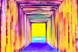 The illustration uses a fragment of the work The yellow bridge at Ceret by Auguste Herbin (1913).