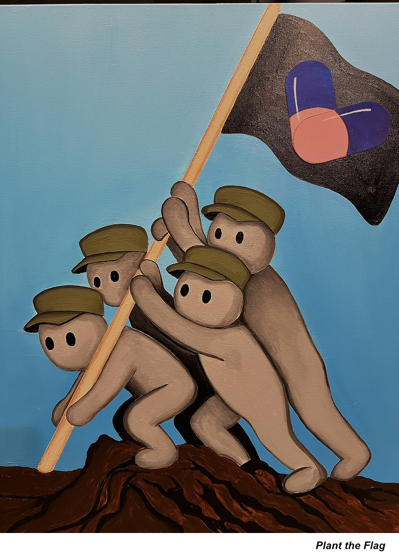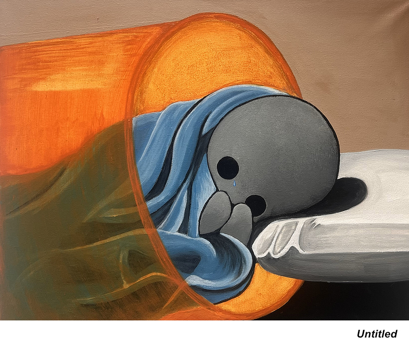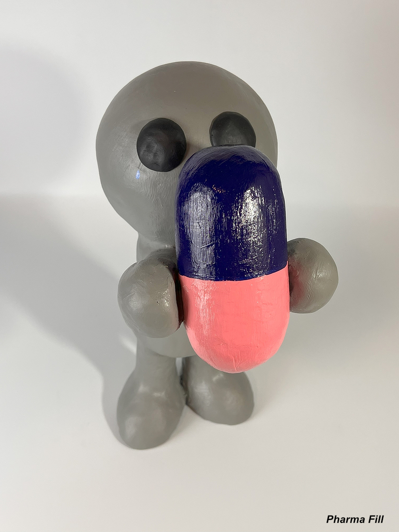I am currently entering my third and final year of graduate school, and I should complete my MFA in Spring 2026. Much of my focus has revolved around researching intergenerational trauma and the effects on children, specifically children of soldiers. Intergenerational trauma has been linked to depression, anxiety, and even diabetes. Many rely on prescription drugs just to function normally in society, which has inspired my new series of work titled “The Pill People.” I work to create art that showcases the effects of trauma in a way that is relatable to anyone, any race, any gender, and any age. My work isn’t meant to criticize the pharmaceutical industry, but merely to bring awareness and acceptance that we all need a little help sometimes, and there is no shame in that. Topics like medicine and mental illness are too often considered taboo, and that needs to change. I’m hoping my “Pill People” will help start open, nonjudgmental conversations where viewers feel accepted, comfortable, and safe to share their truth.