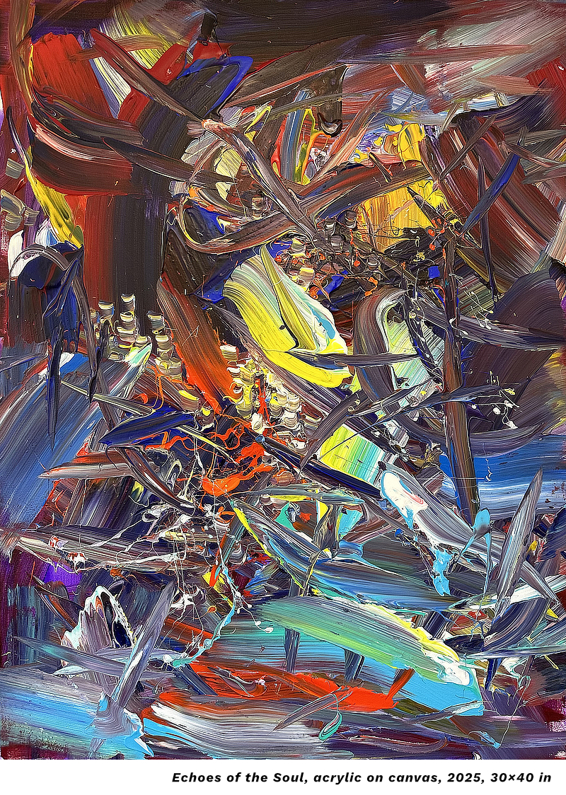I see abstract painting as a kind of symphony of the spirit—where color is melody, brushstroke is rhythm, and composition is harmony