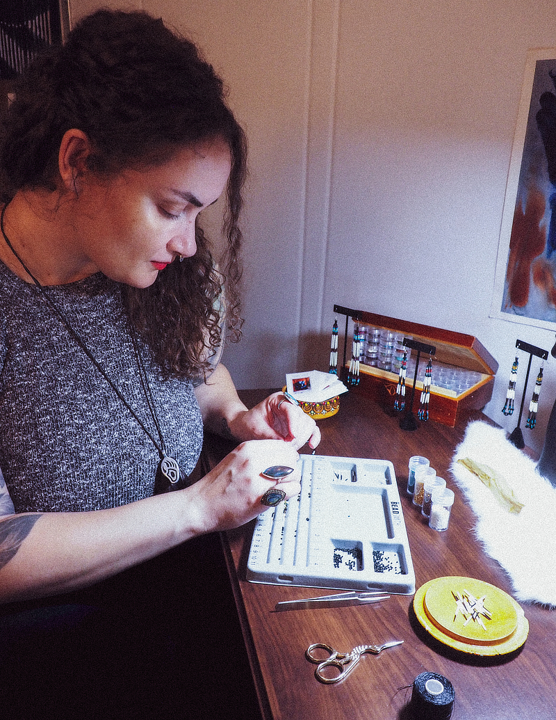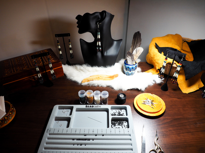 My mediums include oil, watercolor, and mixed media paintings and drawings; and porcupine quill, bone, leather, stone, and beadwork jewelry. Steeped in ancestral Indigenous traditions, each piece is intentionally created with Good Medicine. While I've historically created at home or as a guest artist, I recently obtained my first art studio at Equinox Studios in Si'ahl (Seattle). My work has been exhibited and sold at shows and galleries since 2015, and my heirloom jewelry and prints can be found at the Burke Museum.